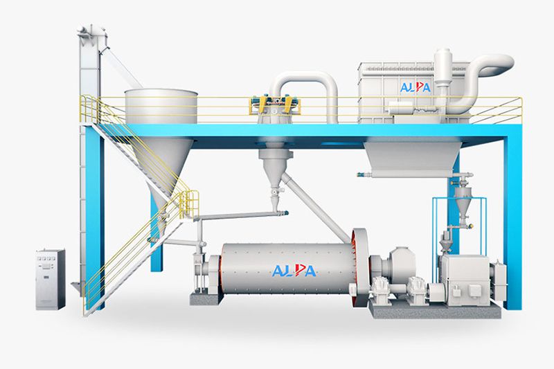 Las materias primas se muelen gruesamente y luego se agregan al molino de bolas a través de un dispositivo de alimentación controlable. A medida que el molino gira, el medio de molienda gana energía cinética e impacta, muele y tritura repetidamente los materiales. Los polvos molidos se descargan en un tanque de succión de aire a través de la parte de cola del molino de bolas y se envían a un clasificador por presión para su clasificación. Los polvos finos calificados son recolectados por un colector ciclónico o colector de polvo, mientras que las partículas más gruesas, después de la clasificación, se liberan desde el extremo inferior del clasificador y vuelven a ingresar al molino de bolas a través de un tubo de transporte para su posterior molienda.